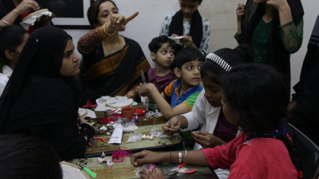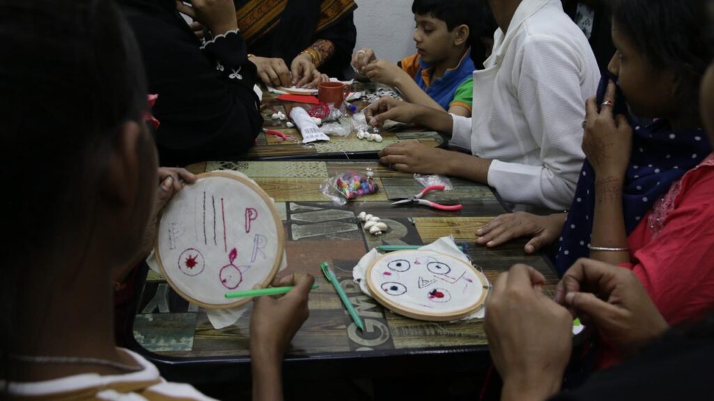 Following the digital exploration, the participants engaged in a unique embroidery and paper-craft session. Building on the stitching techniques learned previously, students were guided to create personalized greeting cards using paper. This activity challenged them to adapt traditional needlework to a different medium, encouraging precision, patience, and artistic flair. It showed how simple materials like paper and thread can be transformed into meaningful, handcrafted items, further bridging the gap between craft-based learning and classroom engagement.