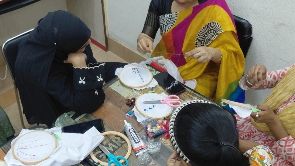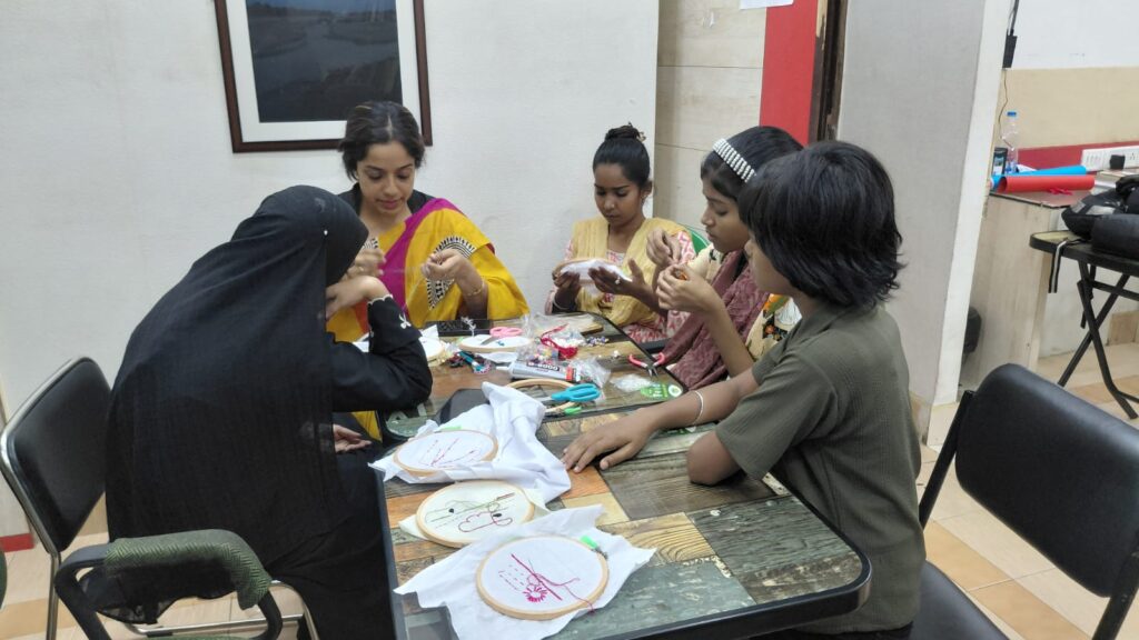 Building on the previous week’s success, the participants engaged in a specialized embroidery and paper-craft session. Following the established pattern of needlework, students continued to refine their stitching techniques on paper, transforming simple threads into intricate decorative patterns for greeting cards. The session encouraged creativity, patience, and fine motor skills, demonstrating how craft-based learning can be used to reinforce consistency and artistic growth.