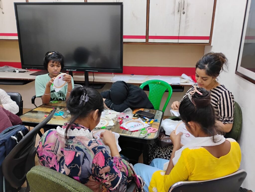 Following the academic evaluation, the participants returned to their basic embroidery training. Continuing the established tradition of craft-based learning, this session allowed students to further refine their needlework skills. The repetition of these stitching techniques encourages patience, creativity, and fine motor precision. By integrating this manual craft alongside rigorous testing, the programme shows how needlework can be used as a calming and productive balance to academic pressure.